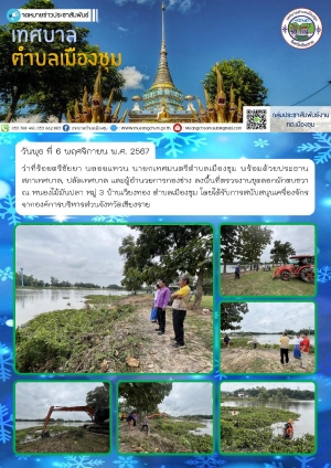 ลงพื้นที่ตรวจงานขุดลอกผักตบชวา ณ หนองไม้มันปลา หมู่ 3 บ้านเวียงทอง ตำบลเมืองชุม โดยได้รับการสนับสนุนเครื่องจักรจากองค์การบริหารส่วนจังหวัดเชียงราย