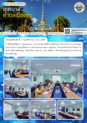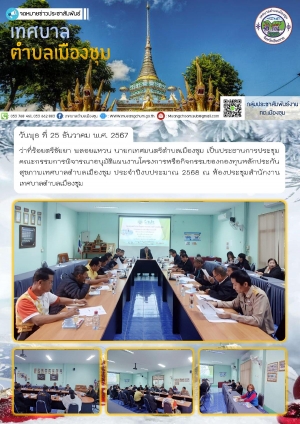 ประชุมคณะกรรมการพิจารณาอนุมัติแผนงานโครงการหรือกิจกรรมของกองทุนหลักประกันสุขภาพเทศบาลตำบลเมืองชุม ประจำปีงบประมาณ 2568 ณ ห้องประชุมสำนักงานเทศบาลตำบลเมืองชุม