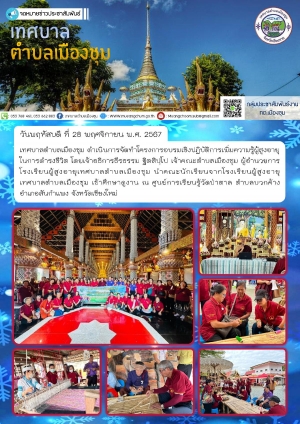 งานพัฒนาชุมชนเทศบาลตำบลเมืองชุม ดำเนินการจัดทำโครงการส่งเสริมอาชีพตุงบูชา ณ วัดเวียงแก้ว หมู่ 2 บ้านเวียงแก้ว ตำบลเมืองชุม
