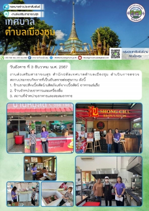 งานส่งเสริมสาธารณสุข สำนักปลัดเทศบาลตำบลเมืองชุม ดำเนินการตรวจสถานประกอบกิจการที่เป็นอันตรายต่อสุขภาพ