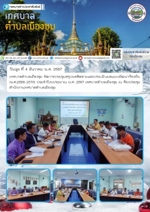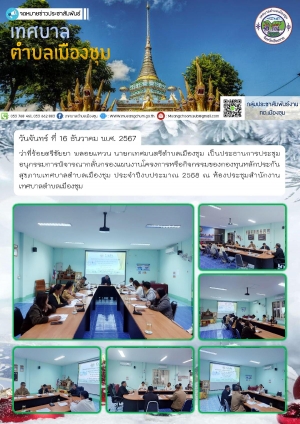 การประชุมสรุปผลติดตามและประเมินผลแผนพัฒนาท้องถิ่น (พ.ศ.2566-2570) ประจำปีงบประมาณ พ.ศ. 2567 เทศบาลตำบลเมืองชุม ณ ห้องประชุมสำนักงานเทศบาลตำบลเมืองชุม