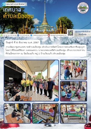 ร่วมงานฤดูหนาว สืบสานประเพณีของดีอำเภอเวียงชัย พร้อมจัดบูธแสดงผลิตภัณฑ์ชุมชน สินค้า OTOP ของตำบลเมืองชุม ณ สนามกีฬากลางเทศบาลตำบลสิริเวียงชัย (หนองหลวง) ตำบลเวียงชัย อำเภอเวียงชัย จังหวัดเชียงราย