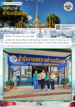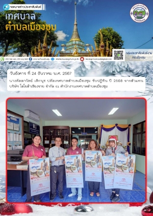 รับปฏิทิน ปี 2568 จากตัวแทนธนาคารเพื่อการเกษตรและสหกรณ์การเกษตร สาขาเวียงชัย ณ สำนักงานเทศบาลตำบลเมืองชุม