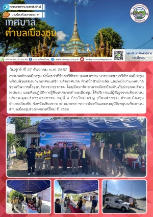 เปิดการตั้งจุดบริการประชาชน โดยมีอปพร. และทีมกู้ชีพเทศบาลตำบลเมืองชุม ให้บริการแก่ผู้สัญจรบนท้องถนน บริเวณจุดบริการประชาชน หมู่ที่ 4 บ้านใหม่เจริญ ช่วงเทศกาลปีใหม่ ปี 2568