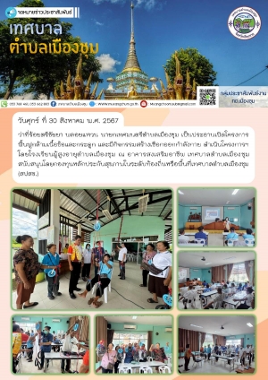 ประชุมสรุปรายงานผลการดำเนินงานของกองทุนหลักประกันสุขภาพเทศบาลตำบลเมืองชุม (สปสช.) ประจำปีงบประมาณ พ.ศ. 2567 ณ ห้องประชุมสำนักงานเทศบาลตำบลเมืองชุม
