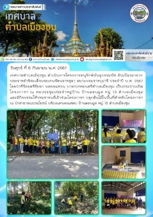 โครงการรักษ์สิ่งแวดล้อมและเพิ่มพื้นที่สีเขียวเทศบาลตำบลเมืองชุม และร่วมลงนามบันทึกข้อตกลง MOUส่งเสริมการคัดแยกขยะและจัดทำถังขยะเปียกภายในครัวเรือน ณ ห้องประชุมสำนักงานเทศบาลตำบลเมืองชุม