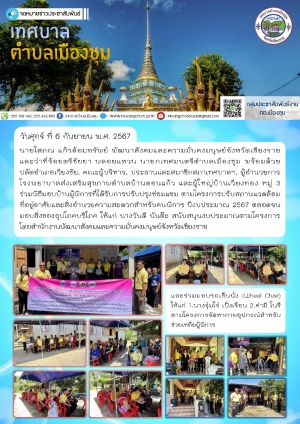 โครงการฟื้นฟูกล้ามเนื้อข้อและกระดูก และมีกิจกรรมสร้างเชือกออกกำลังกาย ดำเนินโครงการฯ โดยโรงเรียนผู้สูงอายุตำบลเมืองชุม ณ อาคารสงเสริมอาชีพ เทศบาลตำบลเมืองชุม