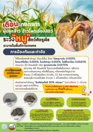 เตือน เกษตรกรผู้ปลูกข้าวและข้าวโพดเลี้ยงสัตว์ ระวังหนูศัตรูพืชระบาดในพื้นที่การเกษตร