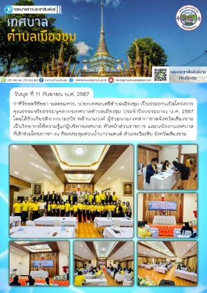 โครงการคุณธรรมจริยธรรมบุคลากรเทศบาลตำบลเมืองชุม ประจำปีงบประมาณ พ.ศ.2567 ณ ห้องประชุมสวนน้ำนาวาแลนด์ อำเภอเวียงชัย จังหวัดเชียงราย