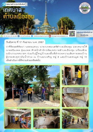 เทศบาลตำบลเมืองชุม ลงพื้นที่สำรวจความเสียหายของบ้านผู้ประสบอุทกภัยน้ำท่วม ณ บ้านยกเจริญ หมู่ 8 และบ้านดอนมูล หมู่ 10 เพื่อดำเนินการให้ความช่วยเหลือต่อไป