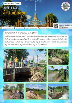 ว่าที่ร้อยตรีชัยยา พลอยแหวน นายกเทศมนตรีตำบลเมืองชุม พร้อมด้วยกองช่างเทศบาล, กำนันตำบลเมืองชุม และผู้ใหญ่บ้าน ลงพื้นที่สำรวจความเสียหายของพนังกั้นน้ำหลังระดับน้ำลดลง