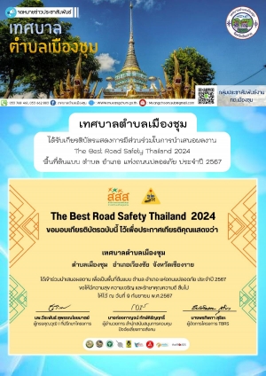 เทศบาลตำบลเมืองชุม ได้รับเกียรติบัตรแสดงการมีส่วนร่วมในการนำเสนอผลงาน The Best Road Safety Thailand 2024 พื้นที่ต้นแบบ ตำบล อำเภอ แห่งถนนปลอดภัย ประจำปี 2567