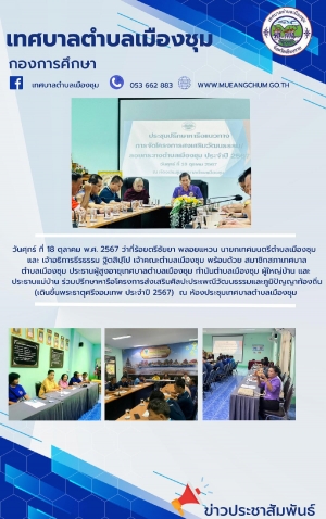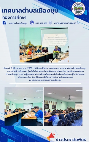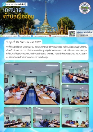 ประชุมคณะผู้บริหาร หัวหน้าส่วนราชการ และพนักงานเทศบาลตำบลเมืองชุม ประจำเดือน ตุลาคม พ.ศ.2567 ณ ห้องประชุมสำนักงานเทศบาลตำบลเมืองชุม