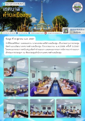 ประชุมจัดทำแผนพัฒนาเทศบาลตำบลเมืองชุม ปีงบประมาณ พ.ศ.2568 ครั้งที่ 3/2567 ณ ห้องประชุมสำนักงานเทศบาลตำบลเมืองชุม