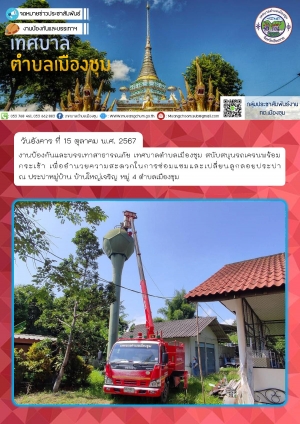 สนับสนุนรถเครนพร้อมกระเช้า เพื่ออำนวยความสะดวกในการซ่อมแซมและเปลี่ยนลูกลอยประปา ณ ประปาหมู่บ้าน บ้านใหญ่เจริญ หมู่ 4 ตำบลเมืองชุม