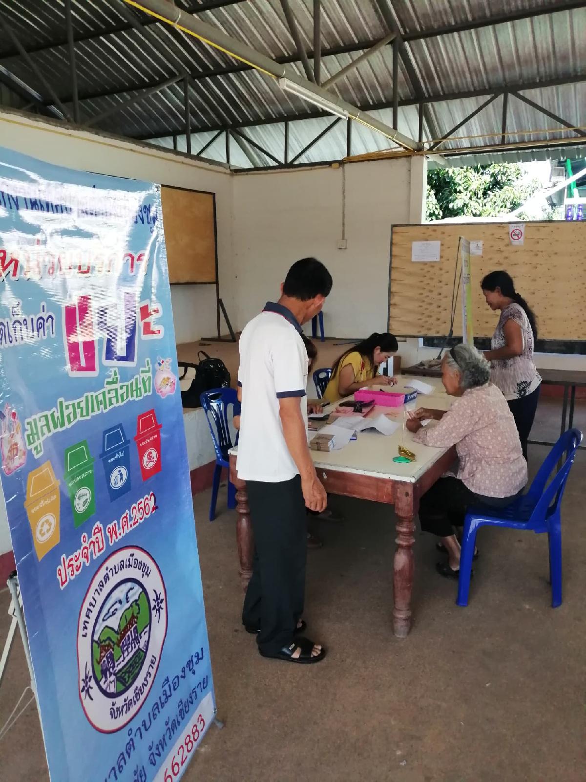 กองคลัง เทศบาตตำบลเมืองชุม ออกหน่วยบริการจัดเก็บค่าขยะมูลฝอย ประจำปี พ.ศ.2562 รอบที่ 2 ประจำเดือน พฤษภาคม 2562