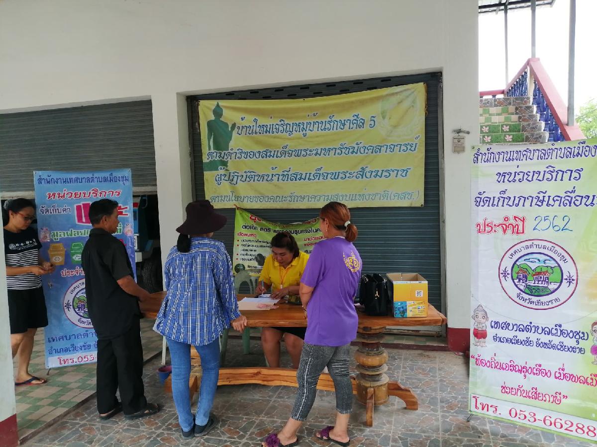 กองคลัง เทศบาลตำบลเมืองชุม ออกหน่วยบริการจัดเก็บค่าขยะมูลฝอย รอบที่ 3 และภาษีประจำปีที่ค้างชำระ ประจำเดือน กันยายน พ.ศ.2562