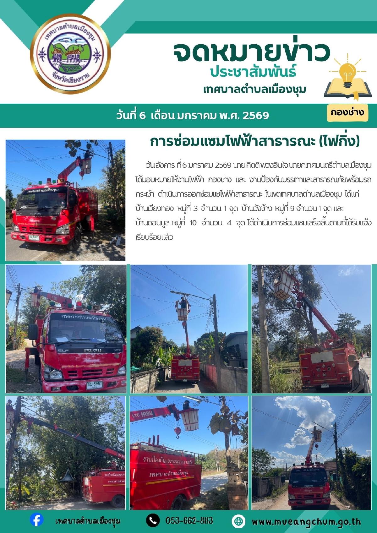 ดำเนินการออกซ่อมแซไฟฟ้าสาธารณะ ในเขตเทศบาลตำบลเมืองชุม ได้แก่