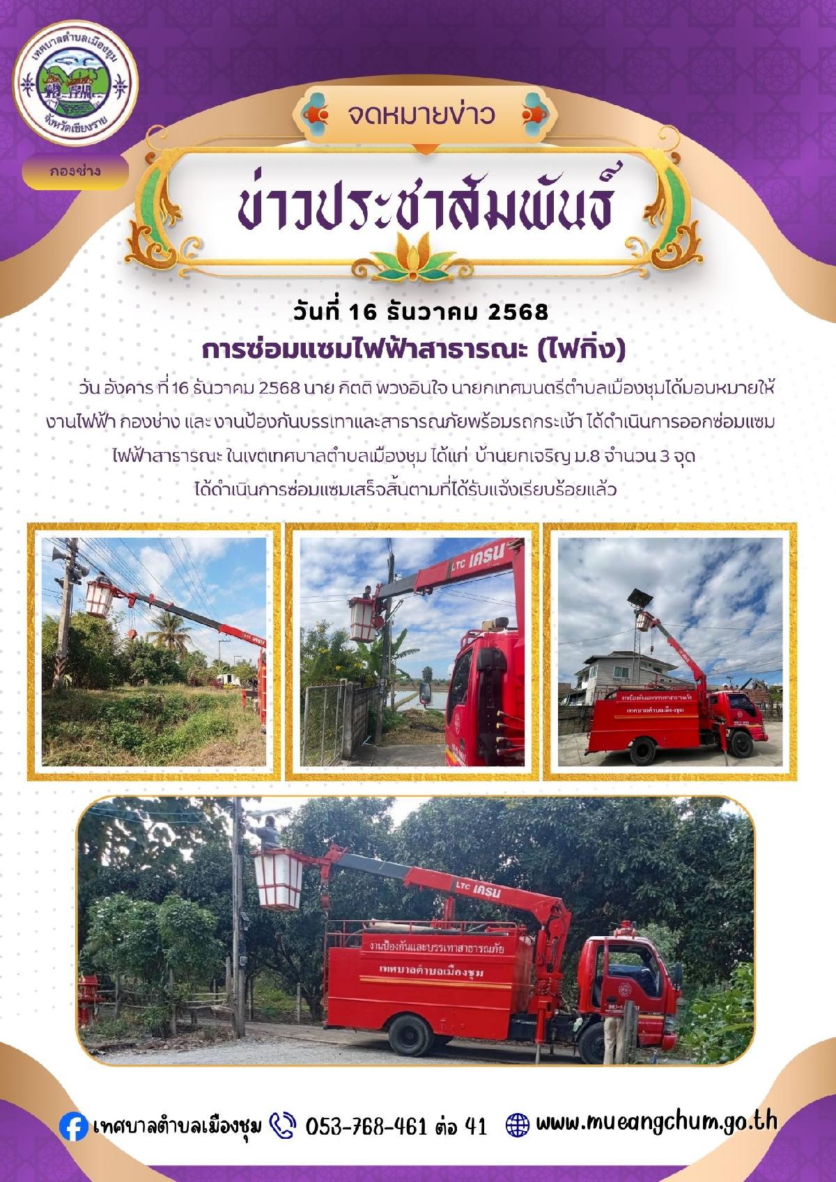 วัน อังคาร ที่ 16 ธันวาคม 2568 นาย กิตติ พวงอินใจ นายกเทศมนตรีตำบลเมืองชุมได้มอบหมายให้